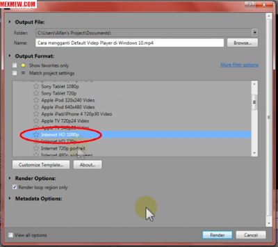 Render project ini sangat erat kaitanya dengan kualitas dan juga jenis file seperti MP4, MKV, MOV dan lain-lain untuk itu pada kesempatan kali ini MexMew Chanel ingin berbagi tips dalam merender video yaitu dengan kualitas HD (High Definitions) 1080p dengan jenis file MP4.